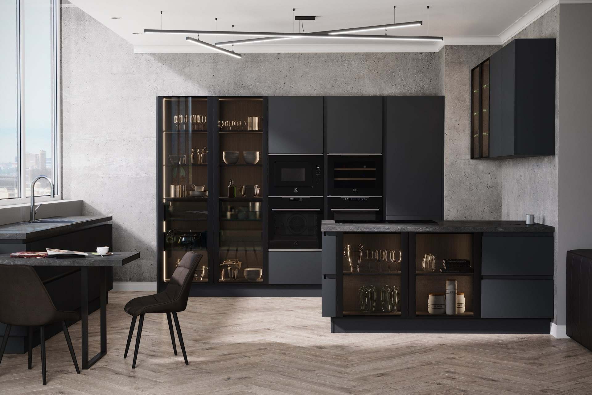 - В черной кухне нужно много света. Это необходимо, потому что черный цвет его поглощает. Таким образом, чем больше источников света, тем лучше.