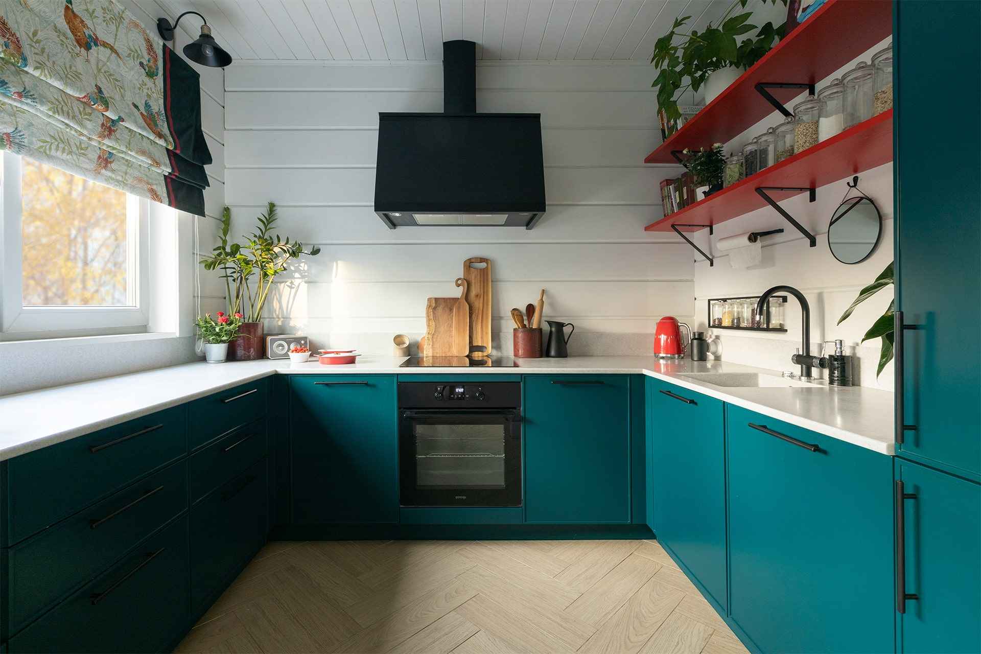 Найти решение не так сложно. У зеленого множество оттенков: от насыщенных (изумрудный, болотный, малахитовый) и сочных (лаймовый, салатовый, травяной) до светлых пастельных (оливковый, фисташковый). Каждый из них может стать основой для создания красивого интерьера кухни.