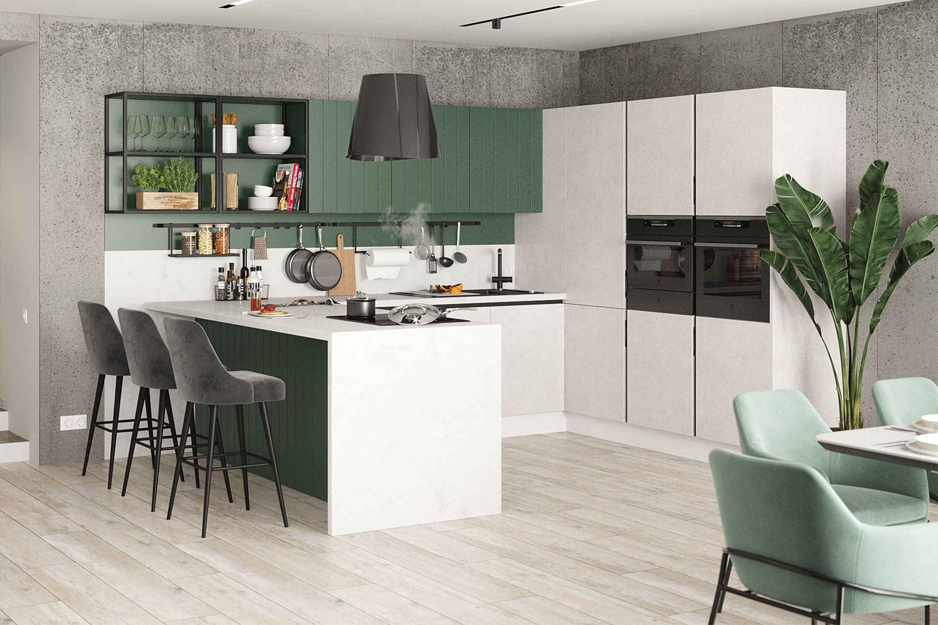Сделайте шаг на пути к гармонии с природой вместе с кухней зеленого цвета. Подойдет не только приверженцам экологии, но и всем, кто хочет наполнить жилище свежестью. Нежная пастельная зелень наполнит дом в современном стиле светом, еловый оттенок окружит уютом любителей классики, а глубокий цвет темного мха идеально впишется в брутальный лофт. Зеленый легко комбинируется с другими природными оттенками и фактурами: брутальным камнем и бетоном, мягкими древесными оттенками и бежевой палитрой, сочными тонами охры и терракотовым.