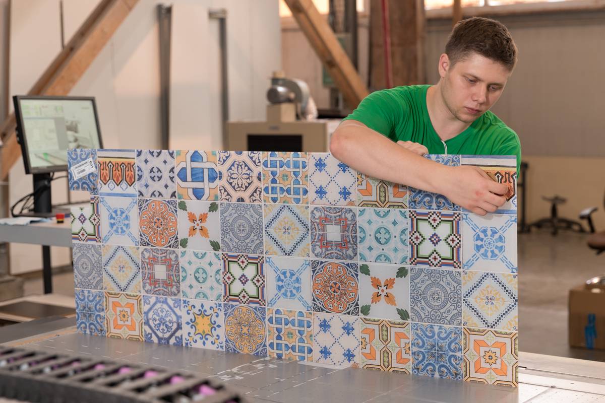 Будущее уже давно наступило — на фабрике роботы и люди, объединив усилия, вместе создают красоту. Фасады из массива, а также все деревянные элементы и столовые группы привозят из Италии, а на фабрике в Саратове их шлифуют, грунтуют и декорируют краской, лаком, патиной. Те же этапы производства проходят и фасады из МДФ. Чтобы получить стабильный тон на всех частях одной кухни, краску наносит робот — его «мастерством» восхищаются даже итальянские партнеры «Марии», бывающие здесь на экскурсиях. Далее полотна вручную расписываются художниками. Их фабрика растит самостоятельно. Мастера учатся по полгода, прежде чем им доверяют расписать целую кухню.